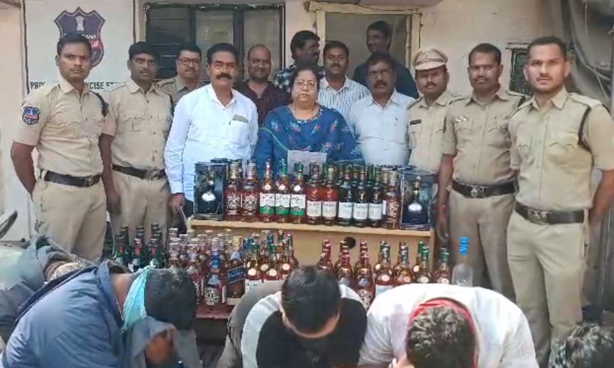 The excise police in Hyderabad have busted a major racket involved in selling adulterated liquor in expensive branded bottles. The gang allegedly sold cheap alcohol as premium liquor at nearly half the market price. Police arrested five accused and seized liquor and materials worth ₹8 lakh.