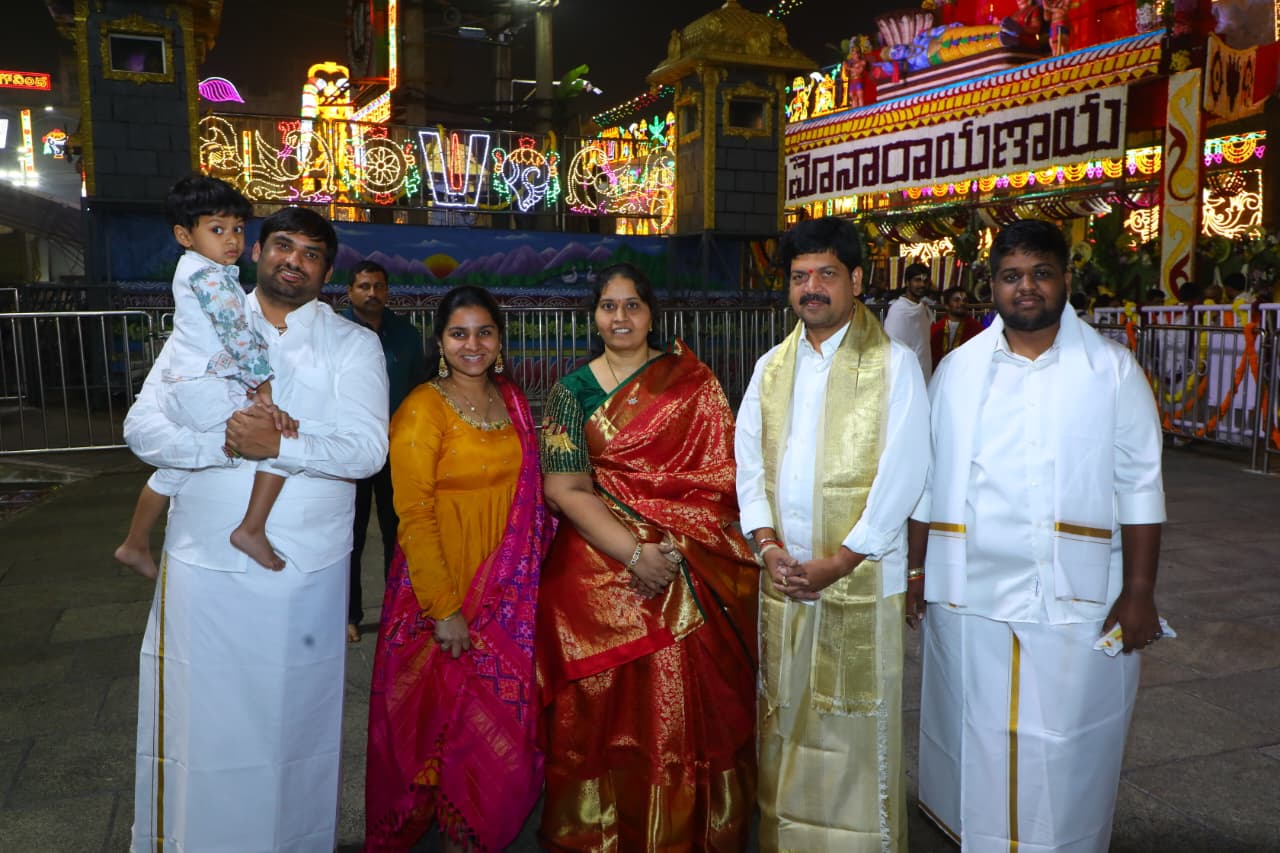 Andhra Pradesh Minister for Mines, Geology & Excise, Kollu Ravindra, visited the sacred Tirumala Tirupati temple along with his family on Tuesday. The minister had darshan of Lord Venkateswara and offered special prayers.