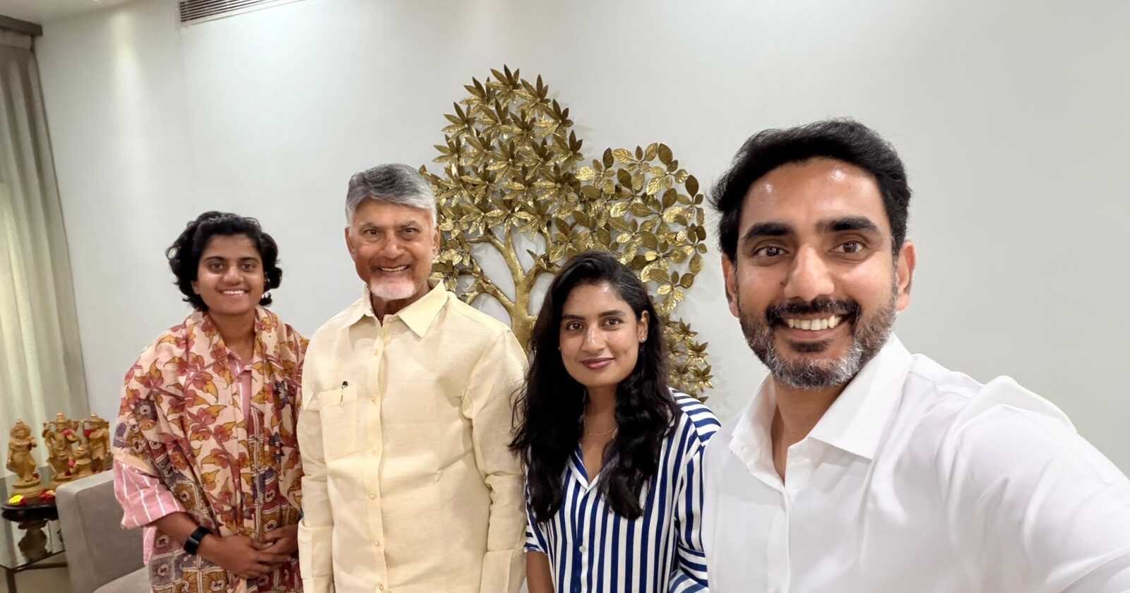 During the meeting, Charani and former India captain Mithali Raj presented a signed T-shirt from the victorious squad to CM Naidu as a token of gratitude.
