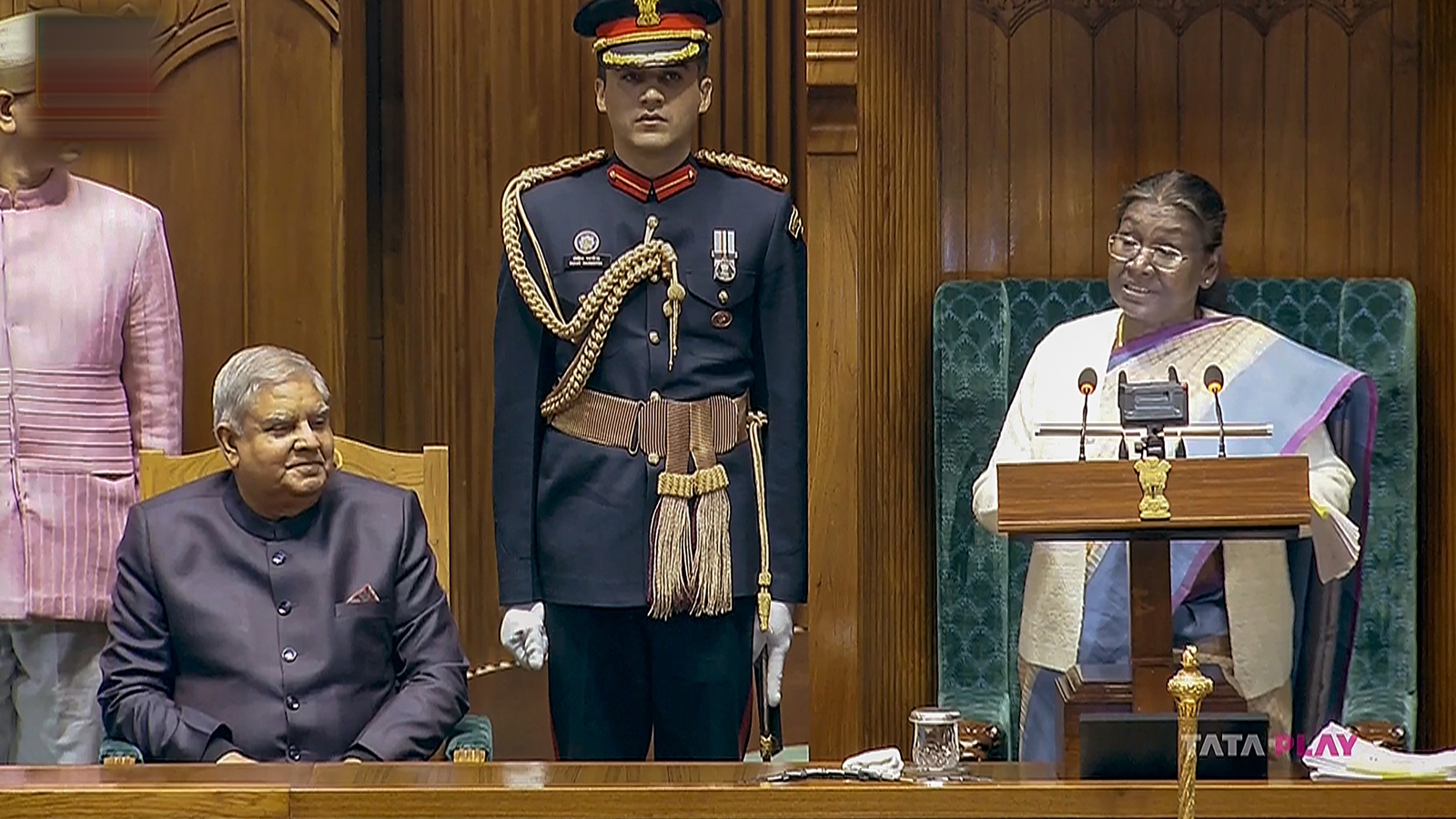 President Droupadi Murmu addressing Parliament at the start of the Budget Session