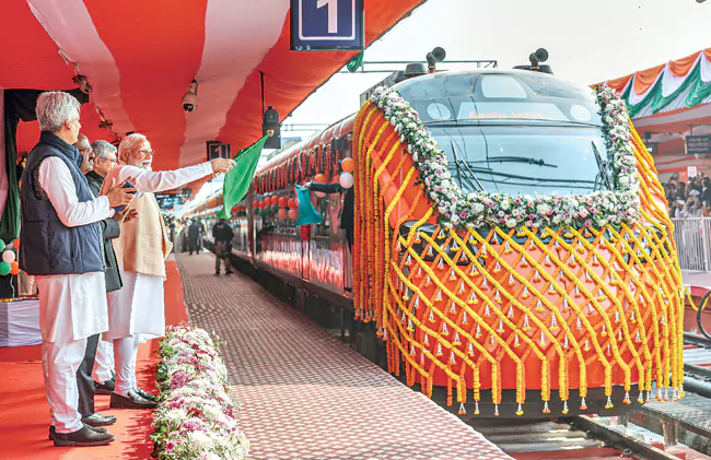 pm modi flags off india’s first vande bharat sleeper train, saying world-class rail travel is now a reality.
