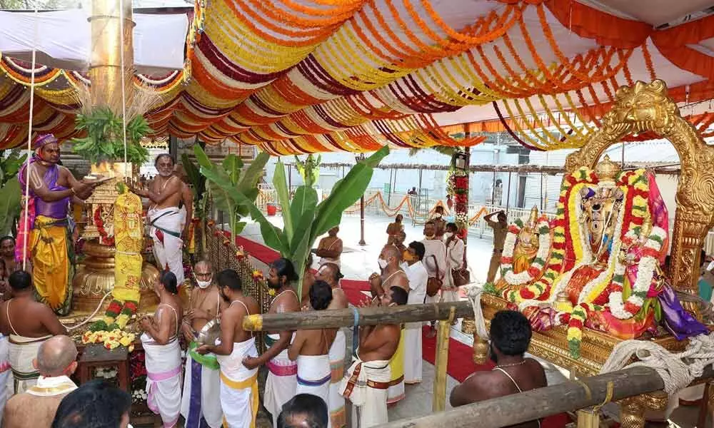 Dhwajarohanam at Sri Kalyana Venkateswara Swamy Temple Srinivasamangapuram