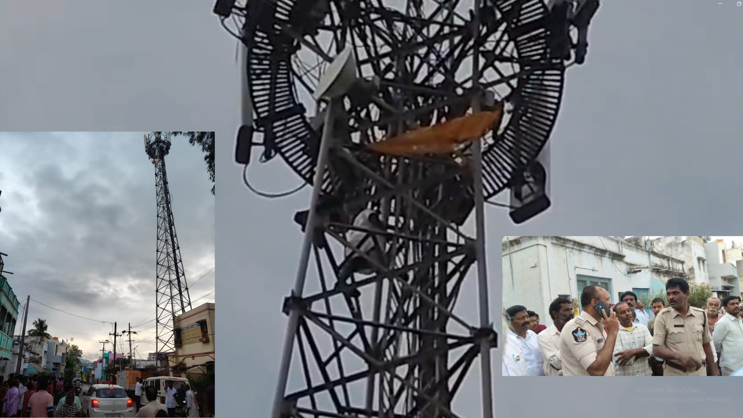 Lakshmi Narayana climbed the tower and threatened to jump, creating panic among family members and residents. Relatives expressed deep concern over his safety and appealed for immediate police action. The protest quickly attracted attention in the area, with people gathering near the tower as the situation escalated.