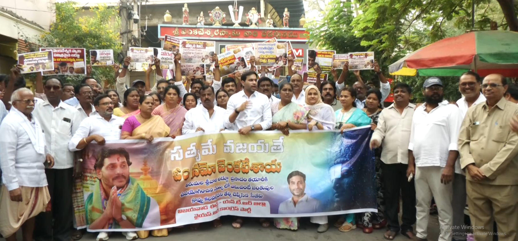 Before the prayers, YSRCP members conducted a rally from Bandar Road to the temple premises. The procession drew attention from devotees and residents alike.